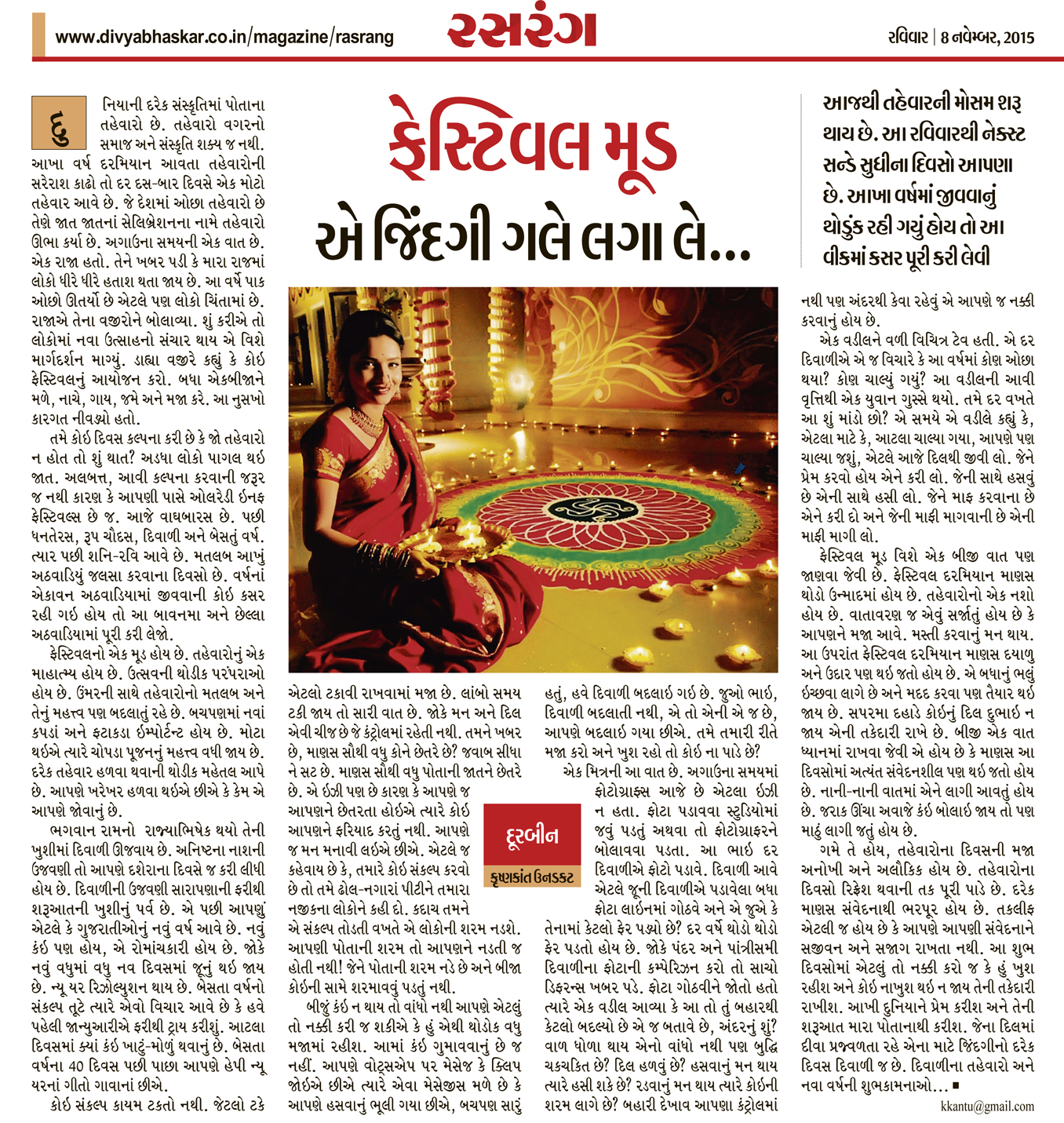 આ દિવાળીએ જિંદગીને પ્રોમિસ આપો કે હું તને પૂરેપૂરી જીવીશ ‘દિવ્ય ભાસ્કર’ના વિશેષ દિવાળી અંક ‘ઉત્સવ’ માં પ્રસિધ્ધ થયેલો લેખ…